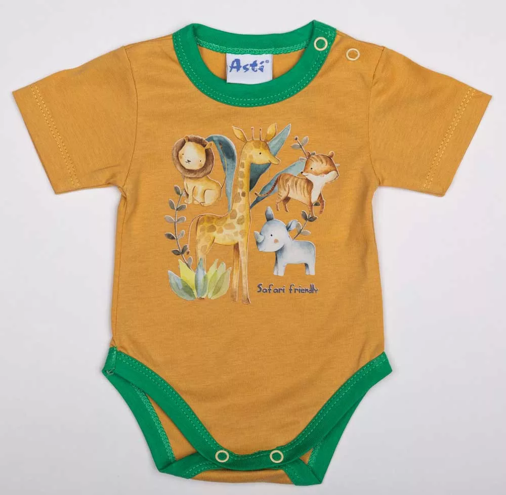 Rövid ujjú baba body Szafari mintával