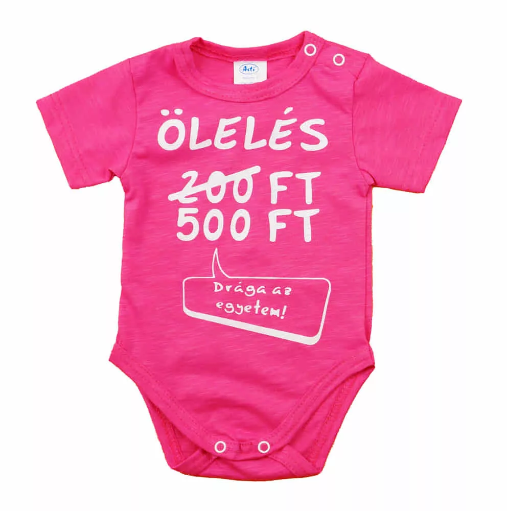 Feliratos rövid ujjú baba body Ezzel a vállon patentos baba bodyval a kisbabád mindig stílusos lesz. A body feliratos, ami egyszerre vicces és aranyos. A 100% pamut anyaga garantálja a kényelmet, és a nikkelmentes patentoknak köszönhetően nem kell aggódnod az allergiás reakciók miatt. Gondosan tervezett és készített termék, így biztos lehetsz benne, hogy a legjobbat kapod. A minőségi magyar termék, ami tökéletes választás minden unisex babáknak. Tökéletes választás, ha szeretnél egy igazán minőségi és kényelmes ruhadarabot a babádnak. Minőségi magyar termék Anyaga: 100% pamut, Minőség: I. osztály