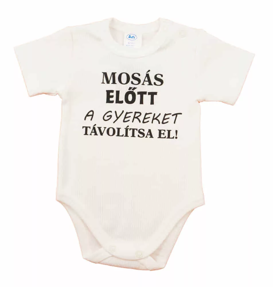 Feliratos rövid ujjú baba body Ezzel a vállon patentos baba bodyval a kisbabád mindig stílusos lesz. A body feliratos, ami egyszerre vicces és aranyos. A nikkelmentes patentoknak köszönhetően nem kell aggódnod az allergiás reakciók miatt. Gondosan tervezett és készített termék, így biztos lehetsz benne, hogy a legjobbat kapod. A minőségi magyar termék, ami tökéletes választás minden unisex babáknak. Tökéletes választás, ha szeretnél egy igazán minőségi és kényelmes ruhadarabot a babádnak. Minőségi magyar termék Anyaga: 90% pamut – 10% lycra Minőség: I. osztály
