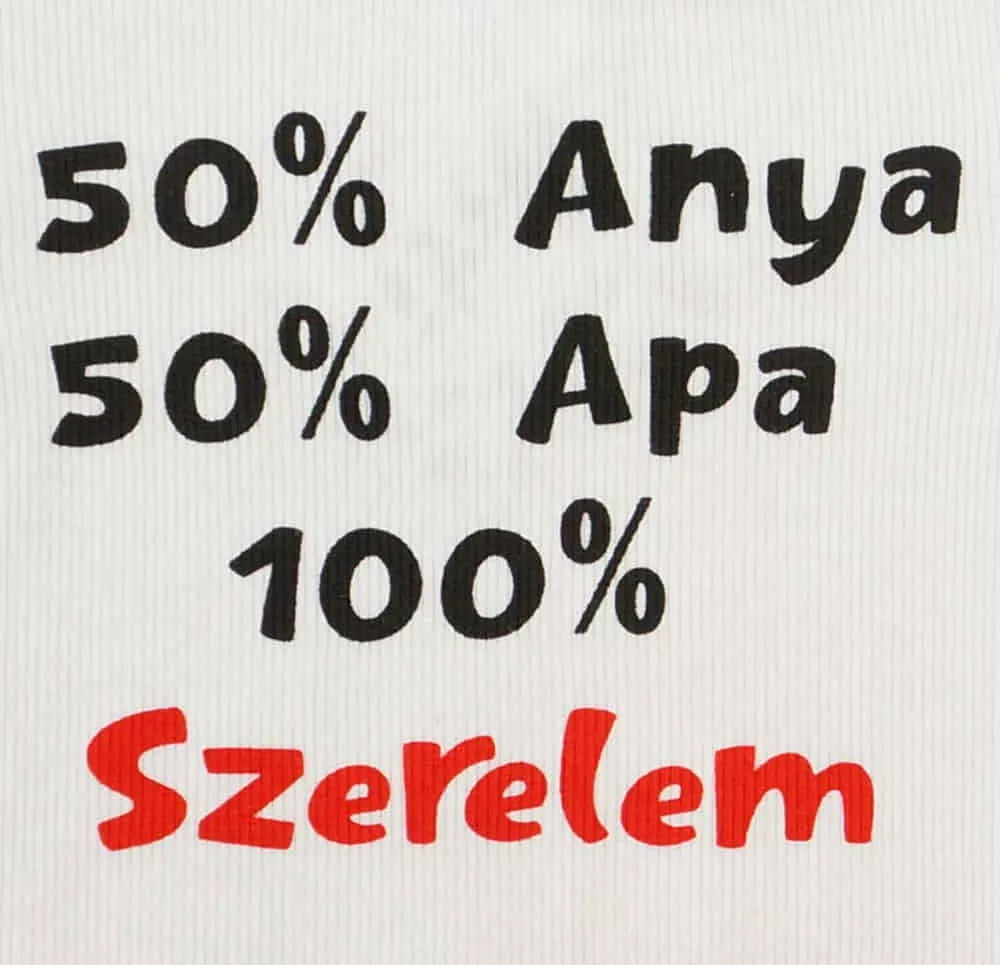 Feliratos rövid ujjú baba body Ezzel a vállon patentos baba bodyval a kisbabád mindig stílusos lesz. A body feliratos, ami egyszerre vicces és aranyos. A nikkelmentes patentoknak köszönhetően nem kell aggódnod az allergiás reakciók miatt. Gondosan tervezett és készített termék, így biztos lehetsz benne, hogy a legjobbat kapod. A minőségi magyar termék, ami tökéletes választás minden unisex babáknak. Tökéletes választás, ha szeretnél egy igazán minőségi és kényelmes ruhadarabot a babádnak. Minőségi magyar termék Anyaga: 90% pamut – 10% lycra Minőség: I. osztály