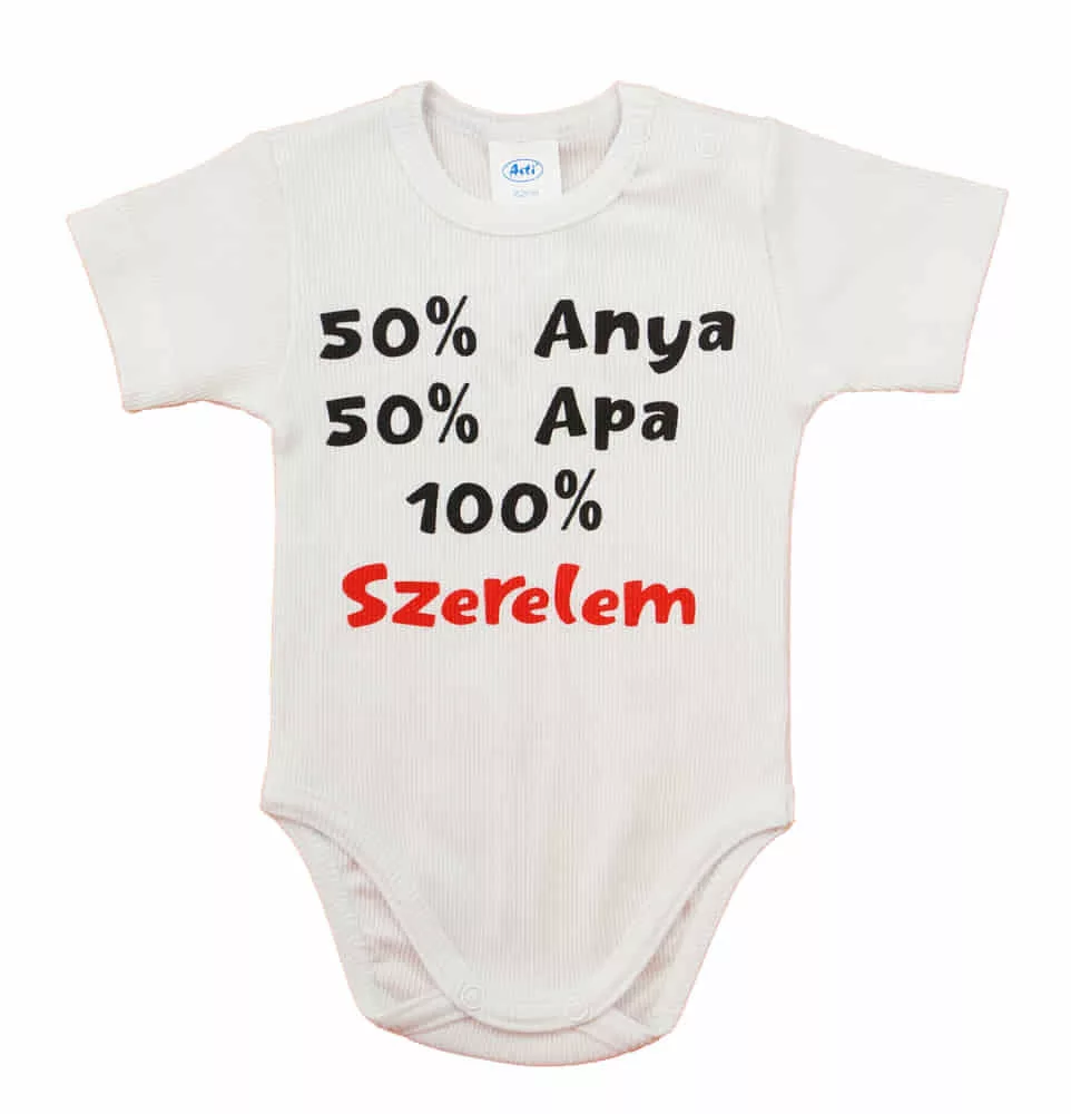 Feliratos rövid ujjú baba body Ezzel a vállon patentos baba bodyval a kisbabád mindig stílusos lesz. A body feliratos, ami egyszerre vicces és aranyos. A nikkelmentes patentoknak köszönhetően nem kell aggódnod az allergiás reakciók miatt. Gondosan tervezett és készített termék, így biztos lehetsz benne, hogy a legjobbat kapod. A minőségi magyar termék, ami tökéletes választás minden unisex babáknak. Tökéletes választás, ha szeretnél egy igazán minőségi és kényelmes ruhadarabot a babádnak. Minőségi magyar termék Anyaga: 90% pamut – 10% lycra Minőség: I. osztály