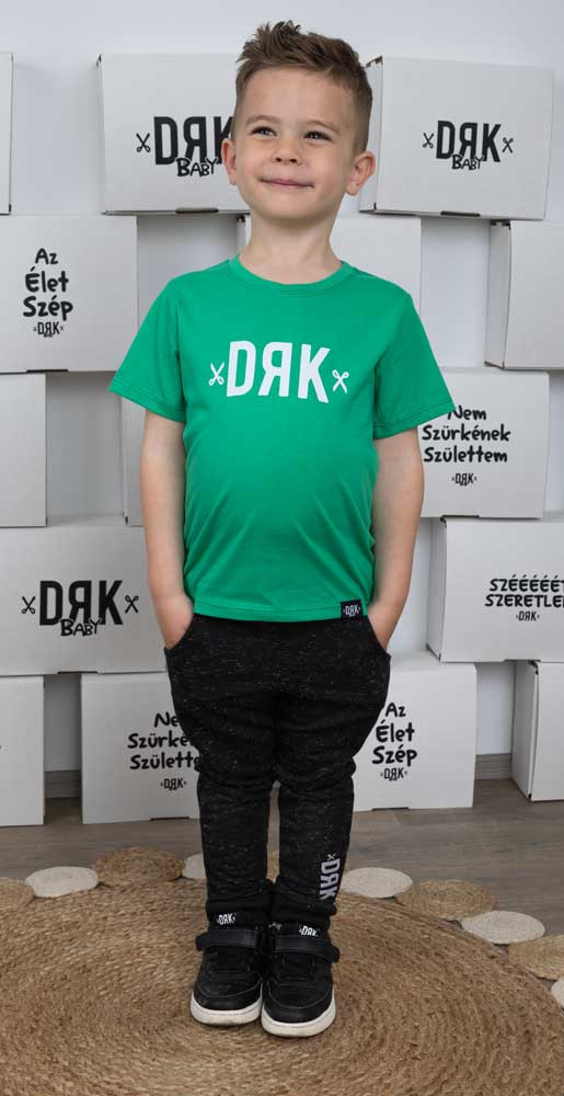 Az Ön gyermekének garantáltan tetszeni fog ez a rövid ujjú póló, amelyen DRK minta díszeleg. A póló nem csak kényelmes viselet a mindennapokban, de a Drk mintának köszönhetően a játékra is inspirál. A minőségi magyar termék garantáltan ellenáll az aktív gyermekjátéknak, és hosszú időn keresztül megőrzi szépségét és kényelmét. A póló magyar termék, így biztos lehet benne, hogy gyermekének bőrével érintkező anyag kiváló minőségű és bőrbarát.
