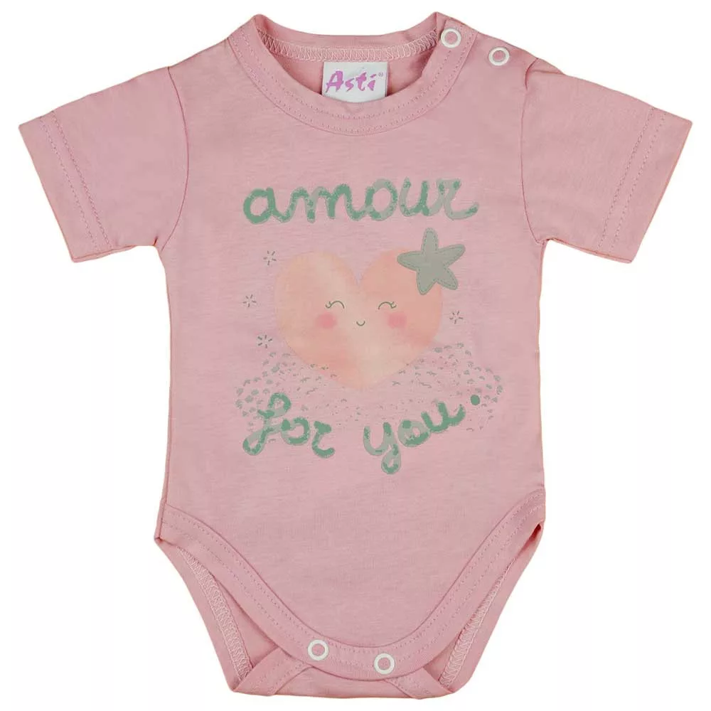Egy igazán kényelmes választás a kis hercegnőknek! Ez a rövid ujjú, szívecskés mintával nyomott baba body tökéletes választás a mindennapokra. A mályva színű, vállon patentos design a legkisebbek kényelmét szolgálja, miközben a 100% pamut anyag garantálja a puhaságot és a tartósságot. A testhezálló szabás nem csak kényelmes, de igazán cuki is! A magyar gyártású bodyban a kisbabák bőre lélegzik, és nem okoz allergiás reakciót, mivel a termék nikkelmentes patenttal készül. Szerezze be ezt a minőségi, I. osztályú baba bodyt, amelyet a magyarországi Andrea Kft. gyártott. Figyelmeztetés: A termék ára mérettől függően változhat!
