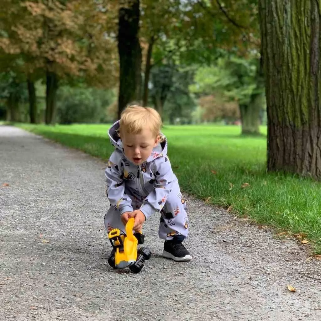 Divatos softshell baba kezeslábas New Baby. Az overál aranyos gyermek mintával díszítve. Minőségi softshell anyagból készül. Az anyag sima, rugalmas, puha és kellemes tapintású. Bizonyos fokig vízálló, nem szívja fel a vizet és ellenáll a szennyeződéseknek. Teljes hosszában cipzáros, ami megkönnyíti a baba öltöztetését és pelenkázását. A cipzár teljes hosszában szövetbéléssel van ellátva. Az overál praktikus kapucnival van ellátva, szélesebb rugalmas szegéllyel a kezén és a lábszárán. Az overál belső része polar anyagú, ami növeli a viselési kényelmet és biztosítja a meleget. Az ujjak fényvisszaverő csíkokkal rendelkeznek. A softshell overál alkalmas sportruházatként, szélálló és lélegző tulajdonságokkal. A baba nagyon kellemesen fogja érezni magát benne.