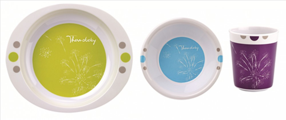A Thermobaby melaminból vagy rozsdamentes acélból készült edénydobozokat kínál, például "Az első evőeszközöm" dobozokat ; vagy olyan készletekben, mint például a melamin edénykészletek , többféle kivitelben kapható.