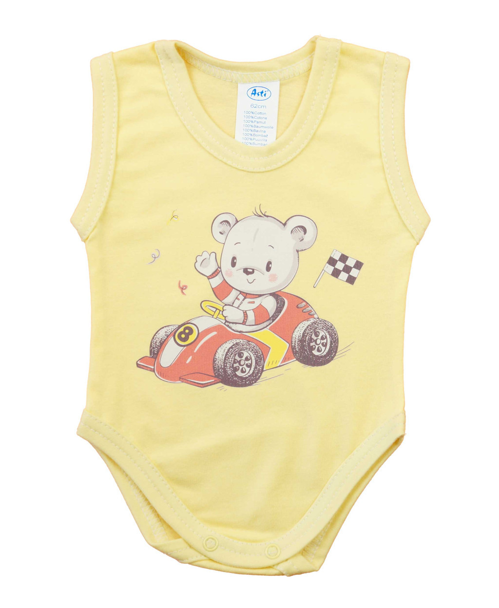 Ujjatlan baba body autós maci mintával Ez a gyönyörű, ujjatlan baba body a járművek szerelmeseinek készült, aranyos maci mintával. A minta különösen jól illik a babák bájos és játékos természetéhez. A body kiváló minőségű, vékony pamutból készült, így kényelmes és lélegző viselet a baba számára, miközben megadja a szükséges meleget is. A body anyaga 100% pamut, ami garantálja a puhaságot és a kényelmet, akár egész napos viselés esetén is. Büszkék vagyunk arra, hogy ez a termék teljes mértékben magyar gyártmány, minőségi helyi munka eredménye. Első osztályú anyagokból készült terméke, hogy a legjobbat nyújthassa a babáknak és szüleiknek. Öltöztesse be babáját ezzel az aranyos mintás bodyval, hogy napja még vidámabb legyen!