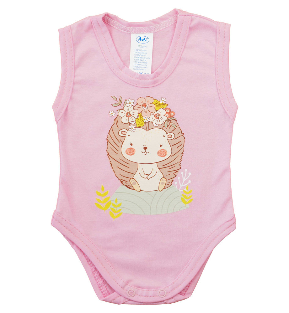 Ujjatlan baba body sünis mintával Ez a gyönyörű, ujjatlan baba body a természet szerelmeseinek készült, aranyos sünis mintával. A minta különösen jól illik a babák bájos és játékos természetéhez. A body kiváló minőségű, vékony pamutból készült, így kényelmes és lélegző viselet a baba számára, miközben megadja a szükséges meleget is. A body anyaga 100% pamut, ami garantálja a puhaságot és a kényelmet, akár egész napos viselés esetén is. Büszkék vagyunk arra, hogy ez a termék teljes mértékben magyar gyártmány, minőségi helyi munka eredménye. Első osztályú anyagokból készült terméke, hogy a legjobbat nyújthassa a babáknak és szüleiknek. Öltöztesse be babáját ezzel az aranyos mintás bodyval, hogy napja még vidámabb legyen!