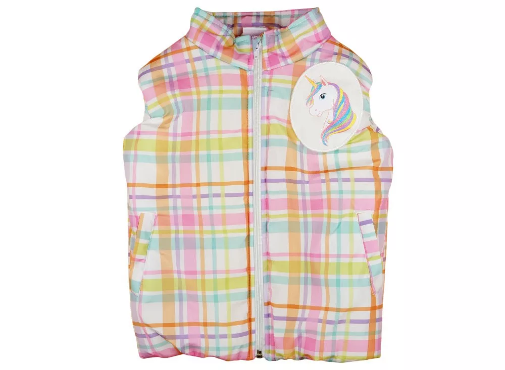 Ez a rózsaszín, unikornis mintás mellény igazi álom minden kislány számára! A színes unikornis minták a mellény elején és hátán teszik igazán varázslatossá. A polár bélés garantálja, hogy gyermeked melegen és kényelmesen érezze magát a hidegebb hónapokban is, míg a vízlepergető kialakítás gondoskodik arról, hogy a nedvesség ne ázzon át. A mellény könnyen kezelhető, cipzárral záródik. Anyaga, töltőanyaga és a bélése is 100% poliészter, ezért strapabíró és könnyen tisztítható. Minősége I. osztályú, így biztos lehetsz benne, hogy hosszú távon is kitart. A mellény Magyarországon készült, és a terméknél megadott életkor csupán irányadó. Öltöztesd gyermekedet stílusosan és praktikusan ezzel a csodás unikornis mellénnyel!