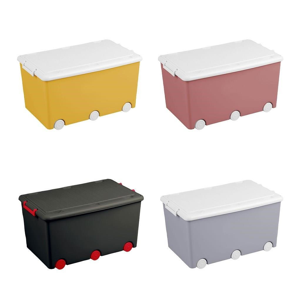60 literes térfogatával és 57x36x29 cm-es méretével ez a tartály ideális bármely gyerekszobába. Az egyszerű felépítés és a nagy méretek lehetővé teszik gyermeke birodalmának gyors tisztítását. A 2 patentos oldalsó zár biztonságos tárolást biztosít játékok, könyvek és egyéb tárgyak számára. A konténerek egymásra helyezésének lehetősége még több helyet takarít meg. Ezenkívül 6 kerékkel van felszerelve a könnyű mozgathatóság érdekében, és tanúsított, kiváló minőségű műanyagból készült, így tartós és megbízható.