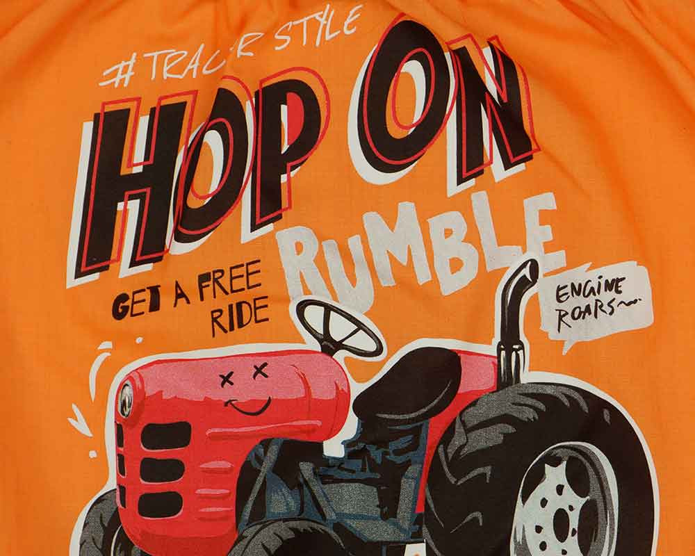 Fedezze fel a traktoros mintával díszített vállfás oviszsákot, ami tökéletes választás a kis traktorrajongóknak! A narancsszínű oviszsák nem csak szuper kényelmes, de a vidám minta garantáltan mosolyt csal a kicsi arcára minden nap. A vállfás kialakításnak köszönhetően könnyedén tárolható és szállítható. Az 100% pamut anyagból készült oviszsák a bőrnek is jót tesz, mert légáteresztő és természetes. Egy minőségi magyar termék, amelyben a gyermeked egész nap jól érezheti magát.