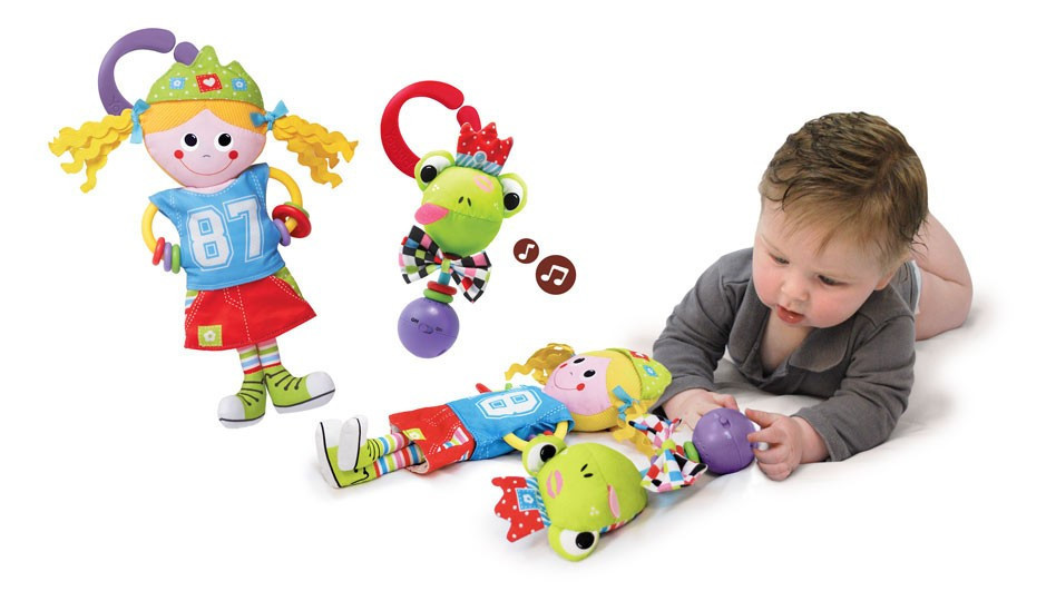 A szett tartalmaz egy hercegnőt (szövetből készült baba, a ruha részei megzörrennek, ha megérintik) és egy zenés csörgő békát.