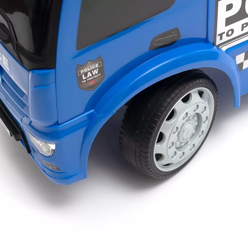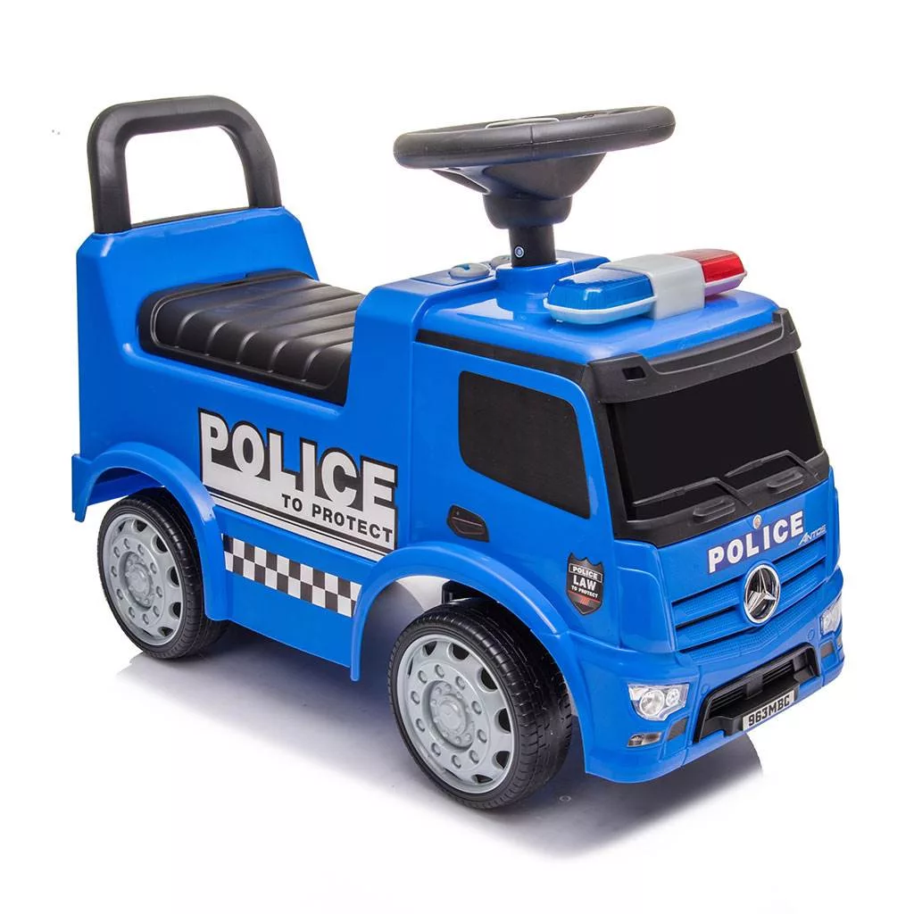 A Mercedes Benz engedélyével gyártott Baby Mix rendőrség igazi csemege a kis járgányvezetők számára. A tökéletes kivitelezés és az olyan részletek, mint a kerekek, fényszórók vagy a karosszéria kialakítása mindenki figyelmét felkeltik, és nagyon gyorsan a kicsi kedvenc játékává válik otthon és séták során is. A Baby Mix Mercedes Benz bébijárgány kiváló minőségű műanyagból készült. Apró autóversenyződ úgy fogja érezni magát rajta, akár egy valódi Mercedesen! A kormánykerék alatt található két gomb a fény- és hangjelzés bekapcsolására szolgál. A járgány segít fejleszteni a gyerek motoros képességeit, emellett rengeteg szórakozást és jókedvet ígér.
