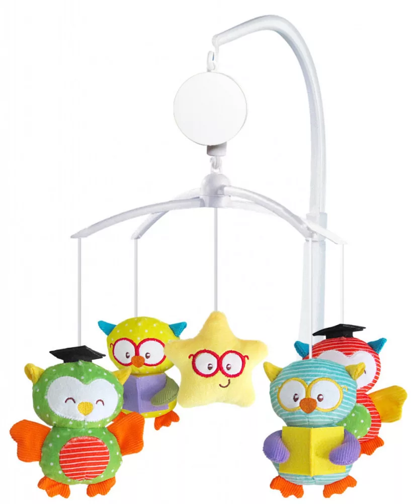 A kiságyra szerelhető zenélő forgót újszülött kortól tervezték, egyaránt fejleszti a gyermek látását és hallását, a nyugtató zene és a mozgó figurák pedig segítenek az elalvásban.