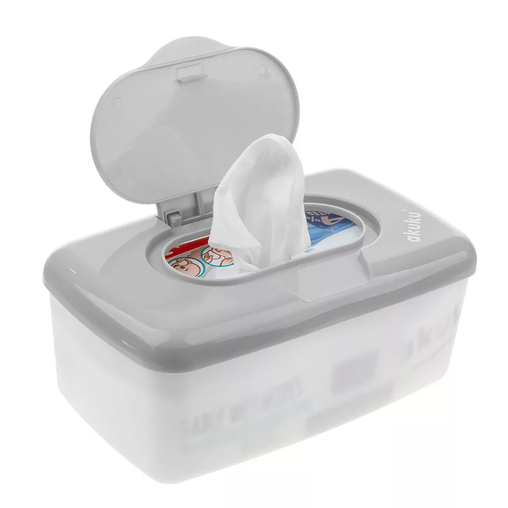 Amikor a pelenkázó közelében vagy, az utolsó, amit szeretnél, hogy a nedves törlőkendő kiszáradjon, lezáródjon vagy ragadjon össze. Az Akuku törlőkendő-tároló doboz szürke színben erre ad megnyugtató, stílusos megoldást — egy praktikus, elegáns, anyukáknak való eszköz, ami egyszerre hasznos és kedves a babád környezetében.