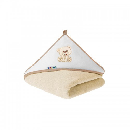Ez az AKUKU baba kapucnis törölköző ideális választás a kicsik számára. Puha és gyengéd az érzékeny bőrnek, 100 x 100 cm-es méretben kapható, így tökéletesen beborítja a babát fürdés után. Az ecru szín és a bájos medve minta minden fürdetést különlegessé tesz.