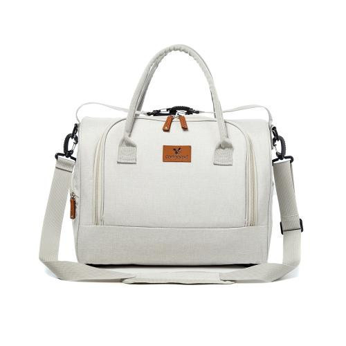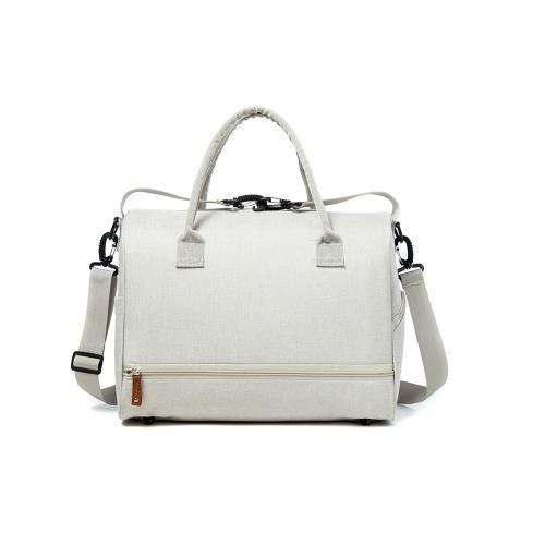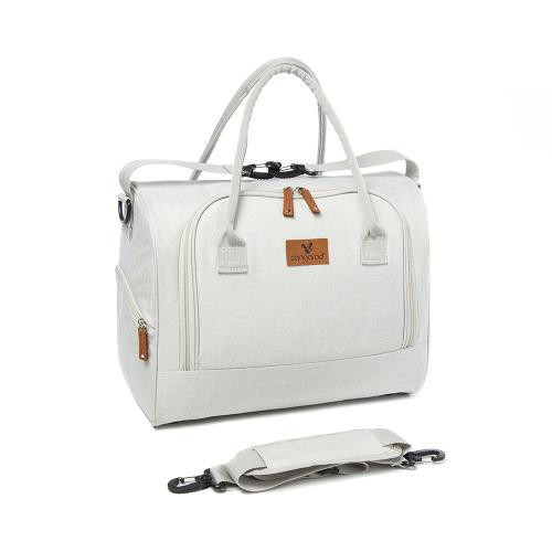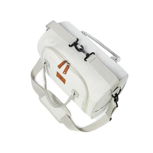 Állítható hosszú fogantyú, amely biztosítja a táska gyors és könnyű átmenetét válltáskáról babakocsi táskára és két kis fogantyúval.