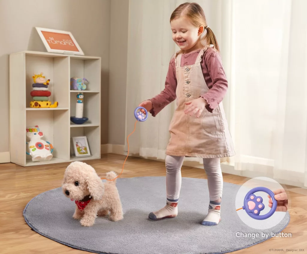Goldie igazi társ a gyereknek: amikor megnyomod a távirányítóját, szépen sétál előre, miközben boldogan csóválja a farkát – imádnivaló élmény minden alkalommal!