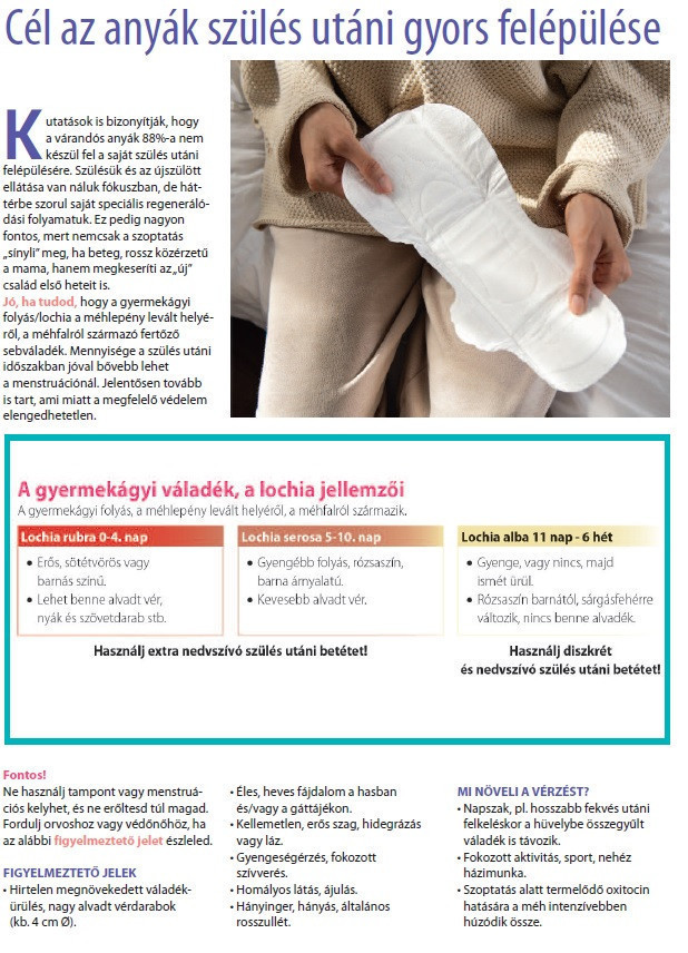 Kifejezetten úgy tervezték, hogy extra védelmet nyújtson a szülés utáni első napokban a legerősebb vérzés esetén.