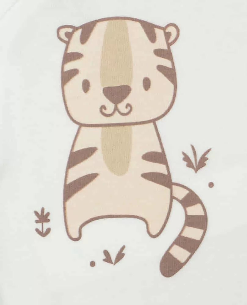 Fedezze fel ezt a puha és kényelmes rövid ujjú kombidresszt, amely biopamutból készült és elöl patentos kialakítású. A termék színe nyers, ami tökéletesen illik a nyári időszakhoz, és könnyed, friss stílust kölcsönöz a babának. A kombidressz elején egy cuki tigris nyomás látható, ami garantáltan elnyeri a kisbabák tetszését. Az itthon készült minőségi termék 100%-os biopamutból készült, amely az I. osztályú minőséget képviseli. Az organikus pamut előnyei között szerepel, hogy ellenőrzött ökológiai gazdálkodásból származik, vegyszermentes, így nem irritálja a baba érzékeny bőrét. Puhasága és elasztikussága miatt könnyen feladható a babára, így a nyári hónapokban is kényelmes viseletet biztosít. A termék nikkelmentes patenttal készül, így azok a babák is nyugodtan viselhetik, akik érzékenyek a nikkelre.