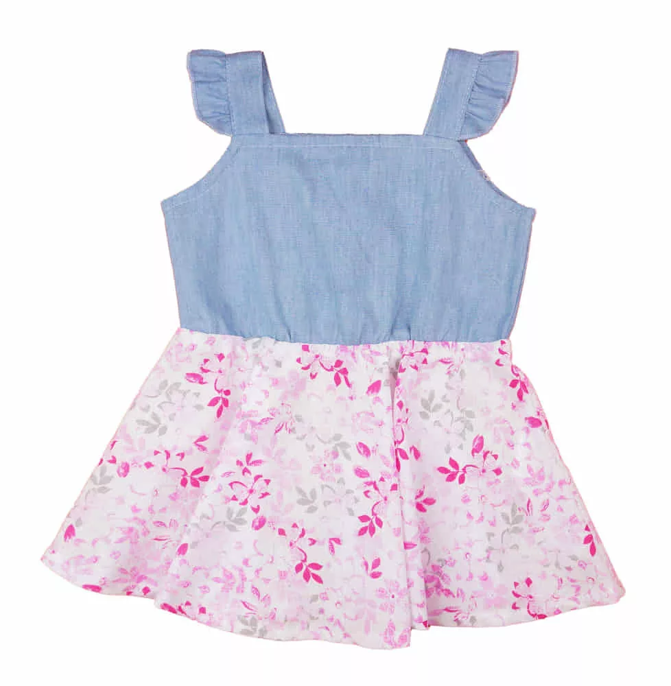 A kislányok imádni fogják ezt a fodros vállú ujjatlan ruhát, mely virágos kék-pink színével igazán vidám és csinos viseletet biztosít a nyári napokon. A ruha 100% merev pamutból készült, amely kényelmes viseletet biztosít, miközben formáját hosszan megőrzi. A merev pamut anyag vasalást igényel, de cserébe gyönyörű tartást ad a ruhának. A fodros vállrész pedig extra bájos megjelenést kölcsönöz. Minőségi magyar termék, melyet gondosan készítettek, hogy a legjobbat nyújtsa kislányának. Anyaga garantáltan 100% pamut, így nem csak szép, de bőrbarát is. I. osztályú minőség, kizárólag Magyarországon készült.