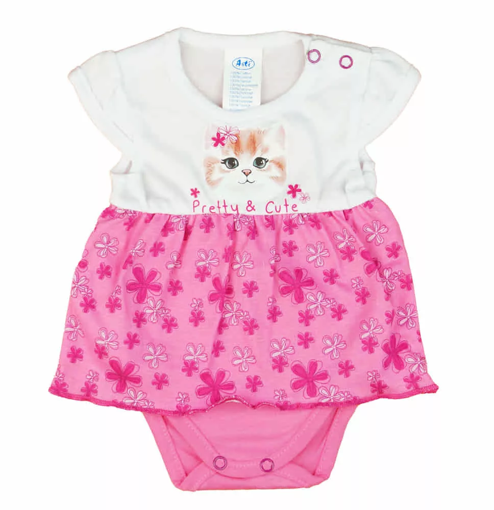 Rövid ujjú szoknyás baba body cuki Virágos cica mintával