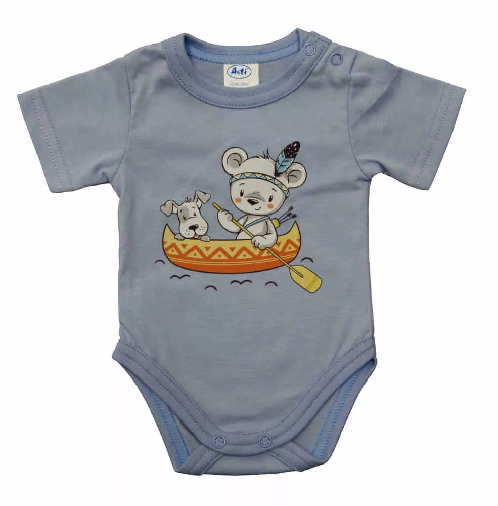 A rövid ujjú baba body a tökéletes választás a kényelem és stílus ötvözéséhez a babák számára. A világoskék alapszínű, Kenus mintával díszített ruhadarab nem csak cuki, de a mindennapi használatra is tökéletes. Könnyedén kombinálható más darabokkal, így mindig kész lehet a váltásra. A 100% pamut anyagának köszönhetően lágy, légáteresztő és bőrbarát, így a babák érzékeny bőrének megóvásában is segít. A könnyű tisztításnak köszönhetően a szülők is örülnek majd neki. Nem csak a design, de a minőség is kiemelkedő: ez a magyar termék I. osztályú, így biztos lehet benne, hogy babája csak a legjobbat kapja. A ruha nikkelmentes patenttal készül, így az érzékeny babák bőrét sem irritálja, allergiás reakciót sem vált ki. Tegye a napokat kényelmesebbé és a stílust teljesebbé ezzel a bájos, Kenus mintás bodyval.