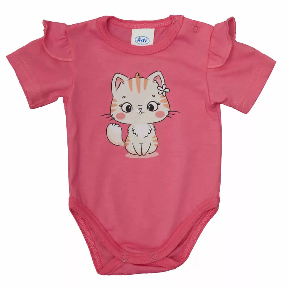 Rövid fodros ujjú baba body cuki Cicás mintával