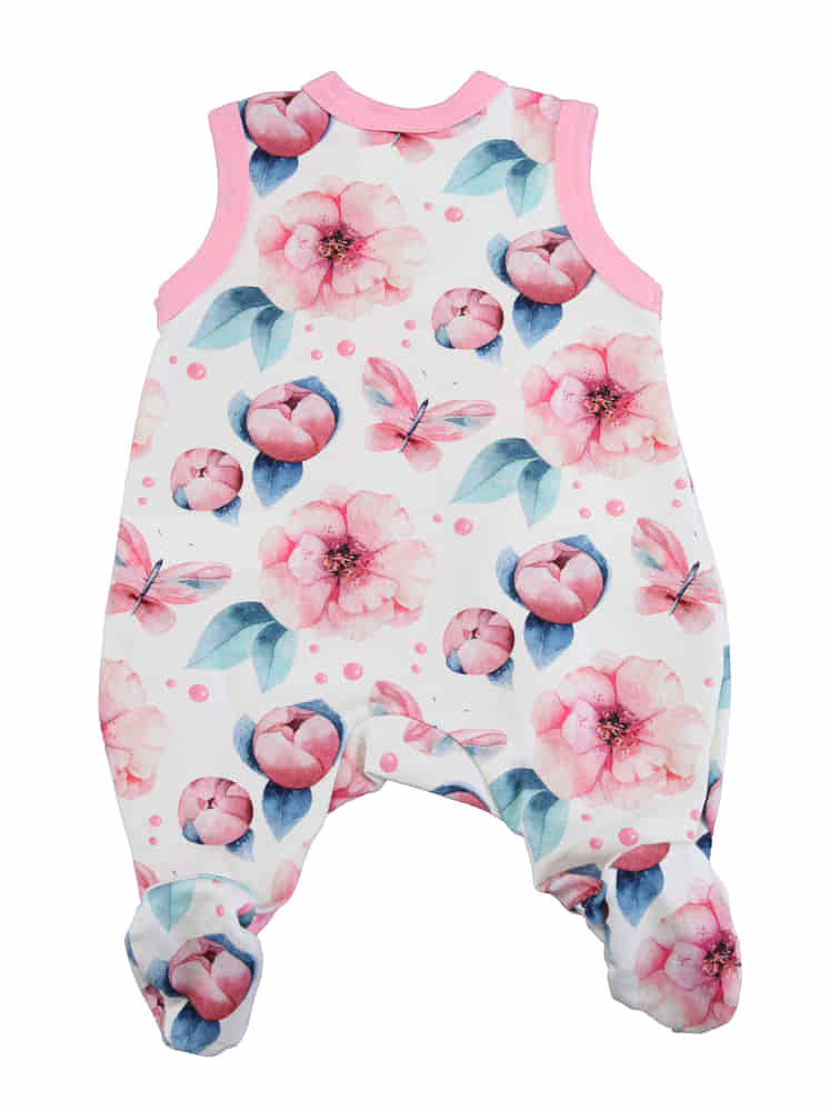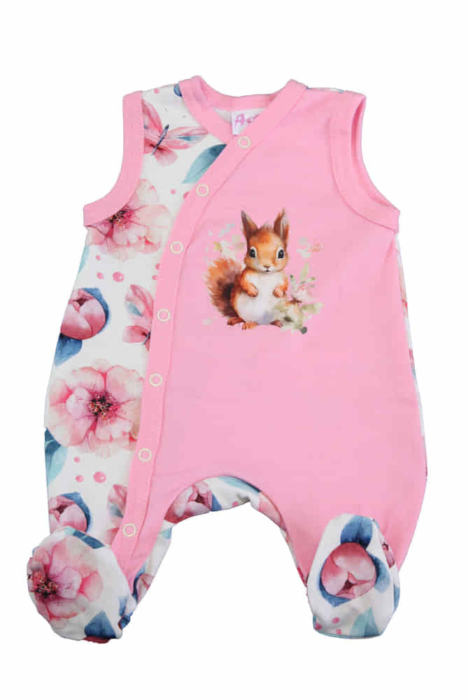 Ujjatlan virágos baba rugdalózó Mókus mintával