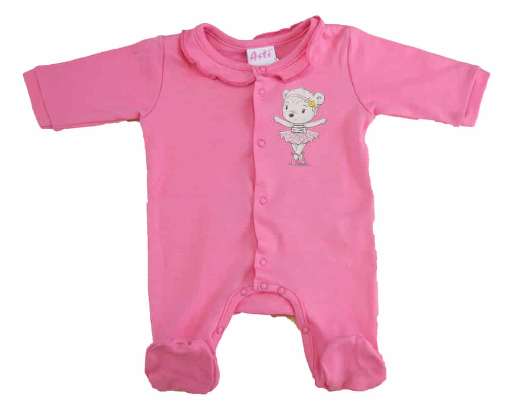 Vékony, pamut, elöl patentos kislány rugdalózó Balerina mintával