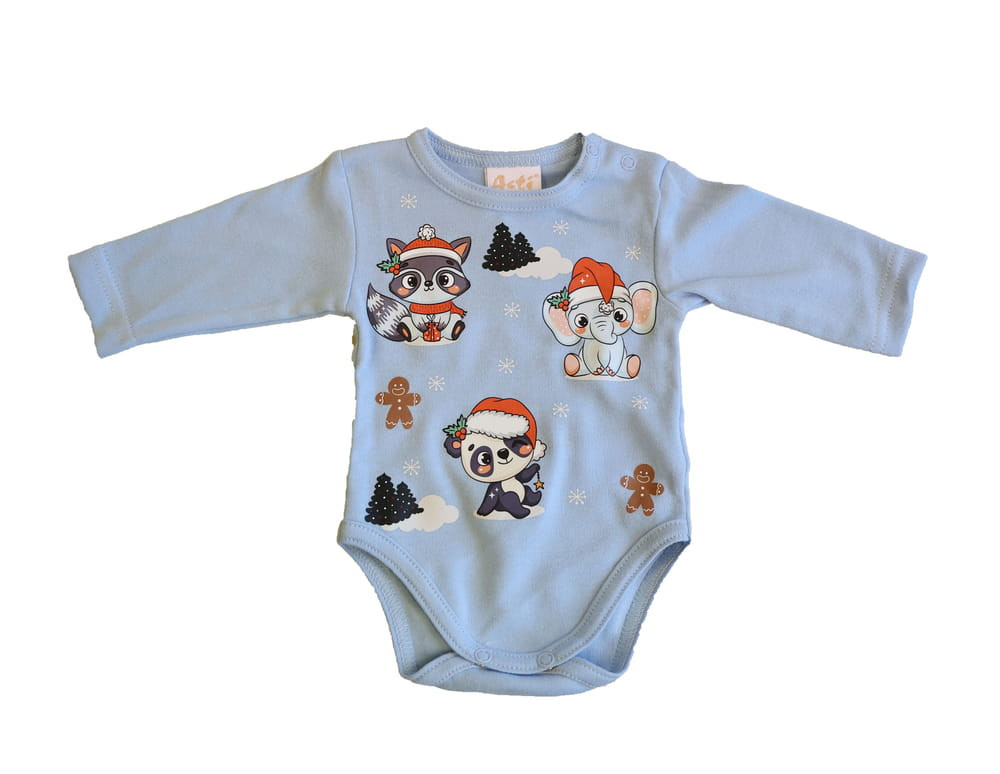 Hosszú ujjú baba body karácsonyi mintával Kisbabák ruhatárának praktikus alapdarabja a karácsonyi mintával díszített, hosszú ujjú baba body, ami tökéletes választás a hideg téli napokra Ez a cuki télapósapis állatok mintával nyomott baba body minőségi, bababarát 100% pamut anyagból készült, szín- és formatartó, ami jól bírja a gyakori mosást is. Vállán patentos, így megkönnyíti a baba öltöztetését. A lába közötti patentos megoldás, pedig a gyors peluscserét teszi lehetővé. Minőségi magyar termék Anyaga: 100% pamut Minőség: I. osztály A termék nikkelmentes patenttal készül. A patent nem tartalmaz nikkelt, ezért nem vált ki allergiás reakciót az erre érzékeny babáknál