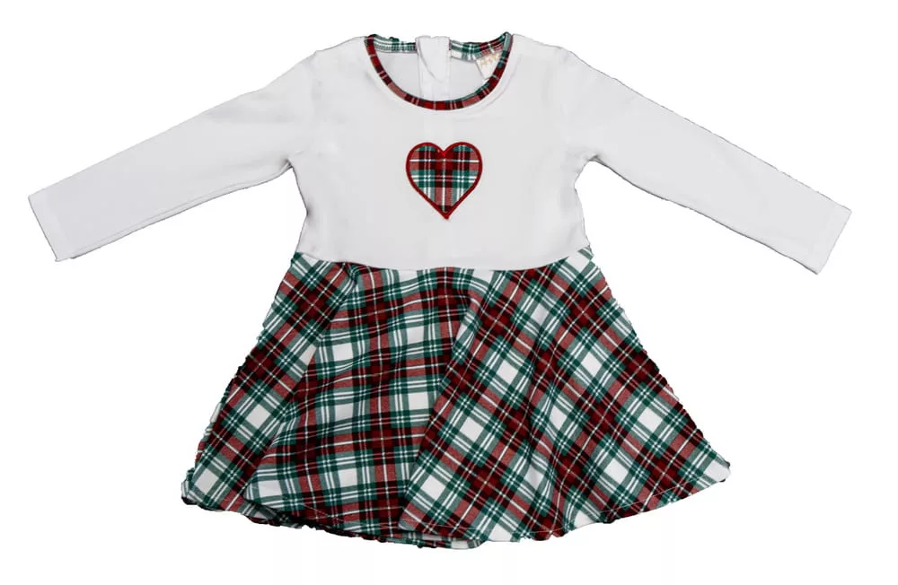 Szivecskés mintával hímzett hosszú ujjú kislány ruha Egy igazi kis szív rabló lesz a kislányod ebben a hosszú ujjú, pörgös szoknyás ruhaban. A fehér felsőrész és a kockás szoknya, melynek hátulján praktikus cipzár található, garantáltan kiemeli a kislányod bájos kisugárzását. A 90% pamut és 10% elasztán anyagösszetétel pedig gondoskodik arról, hogy kisbabád kényelmesen és szabadon mozogjon benne, miközben bőre lélegzik. Minőségi magyar termék, mely tökéletes választás a kicsi lányok számára, hogy stílusosan és kényelmesen élvezzék az ünnepi alkalmakat. Minőségi magyar termék Anyaga: 90% pamut és 10% elasztán, 100% pamut Minőség: I. osztály