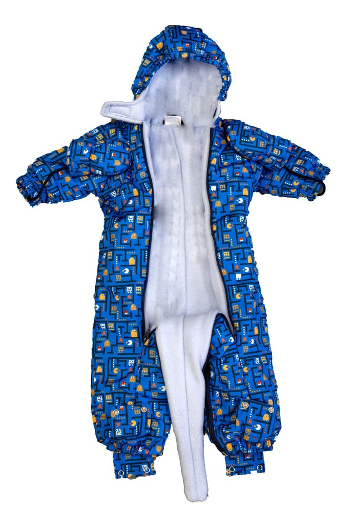 Egy igazán stílusos és praktikus választás a hideg hónapokra, ez cuki Pac-Man mintás kapucnis overál. Az overál különlegessége, hogy bundazsákká alakítható, így a hideg téli napokon is tökéletesen megóvja a kicsiket a fagyos időtől. A vízlepergetős anyaga pedig biztosítja, hogy a hó és az eső sem árthat a kis játszadozóknak. A bélése a kényelmet és a meleget biztosítja. Az elöl található cipzár segítségével könnyedén bele tudja helyezni a babát, valamint a lábrész szétnyitható kialakítása révén a baba mozgását sem gátolja. Mindezek mellett cuki mintája teszi igazán divatossá és aranyossá ezt az overált. Tökéletes választás azok számára, akik nem akarnak kompromisszumot kötni a stílus és a kényelem között.
