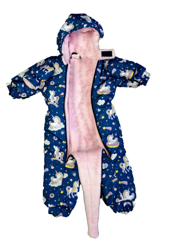 Mintás vízlepergetős, kapucnis bélelt overál kesztyűvel Egy igazán stílusos és praktikus választás a hideg hónapokra, ez cuki Unikornis mintás kapucnis overál. Az overál különlegessége, hogy bundazsákká alakítható, így a hideg téli napokon is tökéletesen megóvja a kicsiket a fagyos időtől. A vízlepergetős anyaga pedig biztosítja, hogy a hó és az eső sem árthat a kis játszadozóknak. A bélése a kényelmet és a meleget biztosítja. Az elöl található cipzár segítségével könnyedén bele tudja helyezni a babát, valamint a lábrész szétnyitható kialakítása révén a baba mozgását sem gátolja. Mindezek mellett cuki mintája teszi igazán divatossá és aranyossá ezt az overált. Tökéletes választás azok számára, akik nem akarnak kompromisszumot kötni a stílus és a kényelem között. Minőségi magyar termék Anyaga: 100% poliészter Minőség: I. osztály A termékeknél megadott életkor irányadó! Kérjük rendelése leadása előtt, vegye figyelembe a mérettáblázatot ennél a terméknél, melyet a képek közt talál.