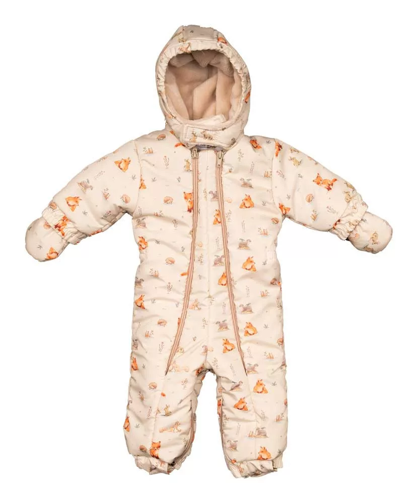 Egy igazán stílusos és praktikus választás a hideg hónapokra, ez cuki erdei állatok mintás kapucnis overál. Az overál különlegessége, hogy bundazsákká alakítható, így a hideg téli napokon is tökéletesen megóvja a kicsiket a fagyos időtől. A vízlepergetős anyaga pedig biztosítja, hogy a hó és az eső sem árthat a kis játszadozóknak. A bélése a kényelmet és a meleget biztosítja. Az elöl található cipzár segítségével könnyedén bele tudja helyezni a babát, valamint a lábrész szétnyitható kialakítása révén a baba mozgását sem gátolja. Mindezek mellett cuki mintája teszi igazán divatossá és aranyossá ezt az overált. Tökéletes választás azok számára, akik nem akarnak kompromisszumot kötni a stílus és a kényelem között.