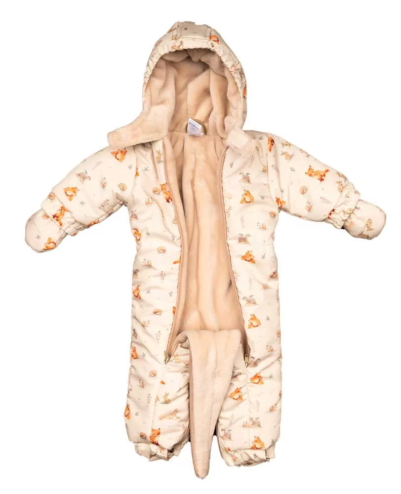 Mintás vízlepergetős, kapucnis bélelt overál kesztyűvel Egy igazán stílusos és praktikus választás a hideg hónapokra, ez cuki erdei állatok mintás kapucnis overál. Az overál különlegessége, hogy bundazsákká alakítható, így a hideg téli napokon is tökéletesen megóvja a kicsiket a fagyos időtől. A vízlepergetős anyaga pedig biztosítja, hogy a hó és az eső sem árthat a kis játszadozóknak. A bélése a kényelmet és a meleget biztosítja. Az elöl található cipzár segítségével könnyedén bele tudja helyezni a babát, valamint a lábrész szétnyitható kialakítása révén a baba mozgását sem gátolja. Mindezek mellett cuki mintája teszi igazán divatossá és aranyossá ezt az overált. Tökéletes választás azok számára, akik nem akarnak kompromisszumot kötni a stílus és a kényelem között. Minőségi magyar termék Anyaga: 100% poliészter Minőség: I. osztály A termékeknél megadott életkor irányadó! Kérjük rendelése leadása előtt, vegye figyelembe a mérettáblázatot ennél a terméknél, melyet a képek közt talál.