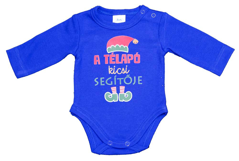 Hosszú ujjú baba body karácsonyi mintával Kisbabák ruhatárának praktikus alapdarabja a karácsonyi mintával díszített, hosszú ujjú baba body, ami tökéletes választás a hideg téli napokra Ez a cuki karácsonyi mintával nyomott baba body minőségi, bababarát 100% pamut anyagból készült, szín- és formatartó, ami jól bírja a gyakori mosást is. Vállán patentos, így megkönnyíti a baba öltöztetését. A lába közötti patentos megoldás, pedig a gyors peluscserét teszi lehetővé. Minőségi magyar termék Anyaga: 100% pamut Minőség: I. osztály A termék nikkelmentes patenttal készül. A patent nem tartalmaz nikkelt, ezért nem vált ki allergiás reakciót az erre érzékeny babáknál