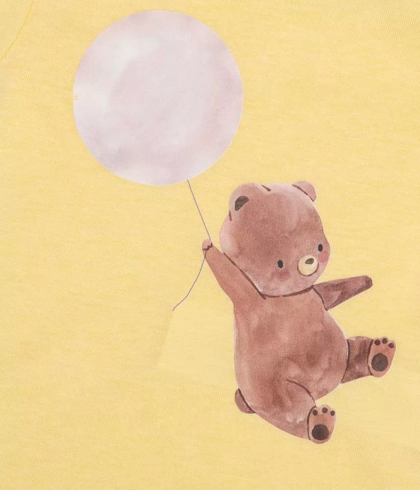 Rövid ujjú baba body cuki Mackó mintával A sárga színű, rövid ujjú baba body bájos mackó mintával varázsolja még édesebbé kisbabáját. A vidám mackó minta garantáltan mosolyt csal az arcára minden kisgyermeknek és szülőnek egyaránt. Kiváló választás lehet mindennapi viseletként, hiszen könnyen kombinálható más ruhadarabokkal. A 100% pamut anyagból készült body puha, kényelmes viseletet biztosít a baba érzékeny bőrének, miközben megóvja azt az irritációtól. A termék könnyen tisztítható, nikkelmentes patenttal készül, így az erre érzékeny babák bőrét sem irritálja. Válaszd ezt a minőségi magyar terméket, amely első osztályú minőségben készült, és öltöztesd babádat a legjobbba! Minőségi magyar termék Anyaga: 100% pamut, Minőség: I. osztály
