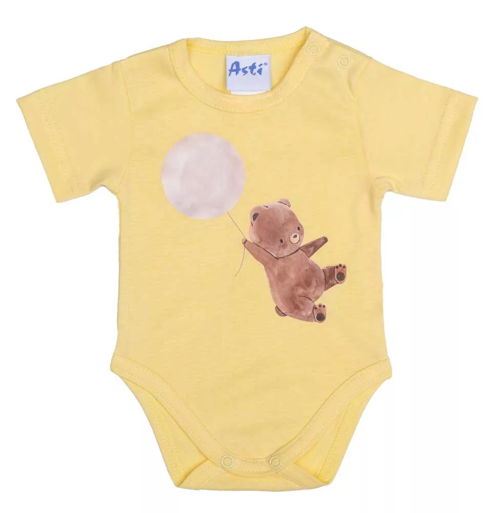 Rövid ujjú baba body cuki Mackó mintával A sárga színű, rövid ujjú baba body bájos mackó mintával varázsolja még édesebbé kisbabáját. A vidám mackó minta garantáltan mosolyt csal az arcára minden kisgyermeknek és szülőnek egyaránt. Kiváló választás lehet mindennapi viseletként, hiszen könnyen kombinálható más ruhadarabokkal. A 100% pamut anyagból készült body puha, kényelmes viseletet biztosít a baba érzékeny bőrének, miközben megóvja azt az irritációtól. A termék könnyen tisztítható, nikkelmentes patenttal készül, így az erre érzékeny babák bőrét sem irritálja. Válaszd ezt a minőségi magyar terméket, amely első osztályú minőségben készült, és öltöztesd babádat a legjobbba! Minőségi magyar termék Anyaga: 100% pamut, Minőség: I. osztály