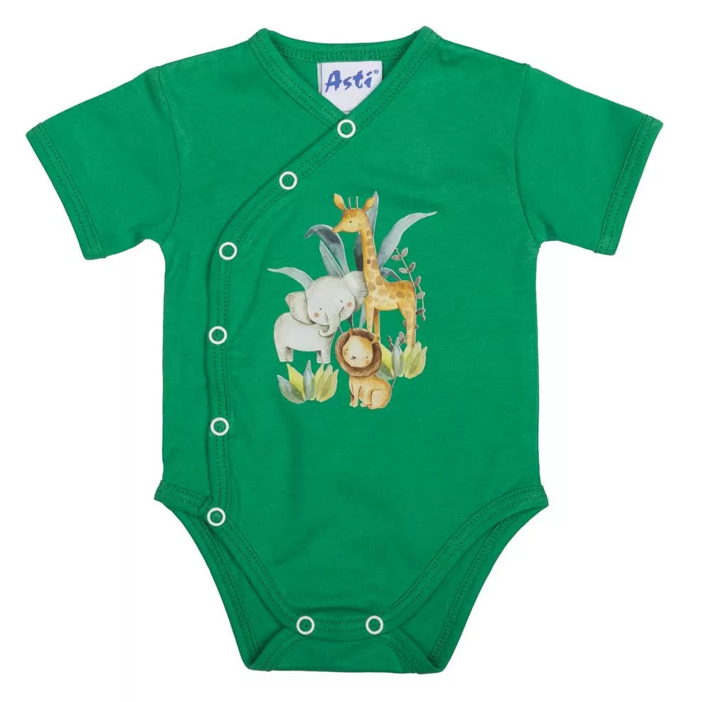 Rövid ujjú elöl patentos baba body szafaris mintával Vidd magaddal az afrikai szafarit minden nap! Ez a rövid ujjú baba body vidám szafaris mintával azonnal feldobja a kis lurkó napját. Készült a legpuhább, 100% pamut anyagból, hogy garantáltan kényelmes legyen a viselése, akár egész nap. Az elöl található praktikus patentok egyszerűbbé teszik a pelenkázást és a öltöztetést. Nikkelmentes kialakításának köszönhetően pedig az érzékeny bőrű babák is nyugodtan hordhatják. Minőségi magyar termék, mely a legjobb választás a kisbabád számára. A cuki szafaris minta mellett nem lehet elmenni szó nélkül. Ne hagyd ki ezt a darabot, amely tökéletesen illik a babagardrób minden részéhez! Minőségi magyar termék Anyaga: 100% pamut, Minőség: I. osztály