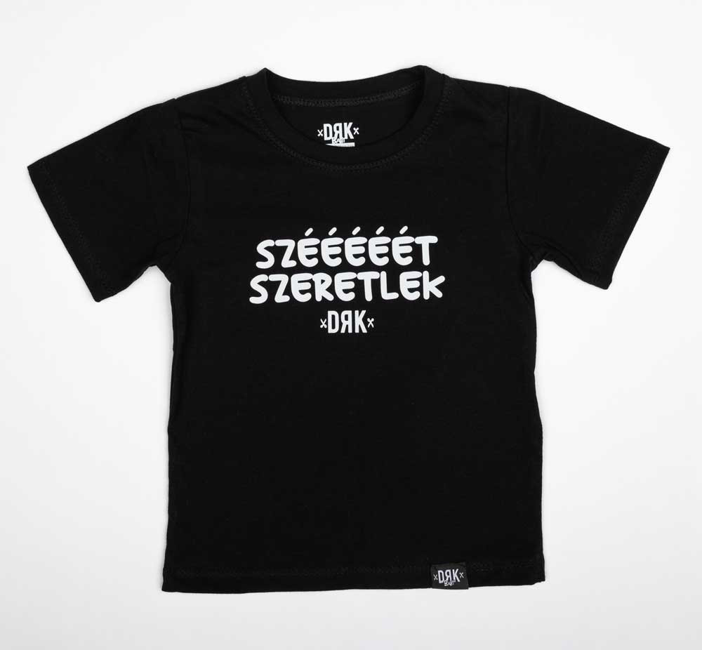 Rövid ujjú póló Dorko DRK "Szééééét Szeretlek" mintával Az Ön gyermekének garantáltan tetszeni fog ez a rövid ujjú póló, amelyen "Szééééét Szeretlek" minta díszeleg. A póló nem csak kényelmes viselet a mindennapokban, de a Drk mintának köszönhetően a játékra is inspirál. A minőségi magyar termék garantáltan ellenáll az aktív gyermekjátéknak, és hosszú időn keresztül megőrzi szépségét és kényelmét. A póló magyar termék, így biztos lehet benne, hogy gyermekének bőrével érintkező anyag kiváló minőségű és bőrbarát. Minőségi magyar termék Anyaga: 100% Pamut Minőség: I. osztály