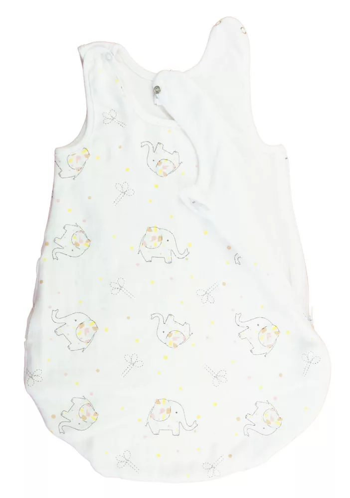 Öltöztesse álomba kisbabáját ebben az elefánt mintás, ujjatlan hálózsákban! Az oldalt cipzáras, vállon patentos kialakításnak köszönhetően könnyedén felvehető és levehető, így az éjszakai pelenkázás sem lesz gond. A hálózsák 100% pamut tetra anyagból készült, ami puha érintésű és légáteresztő, így a baba éjjel-nappal kényelmesen és biztonságosan tud majd aludni. A minőségi magyar termék érzékeny bőrű babák számára is ideális, hiszen nikkelmentes patenttal készült, ami nem vált ki allergiás reakciót. A 1 TOG értékű hálózsák tökéletes választás melegebb hónapokra. Segítünk a választásban: táblázatunk segítségével könnyedén kiválaszthatja a megfelelő hálózsákot az évszaktól és a hőmérséklettől függően.