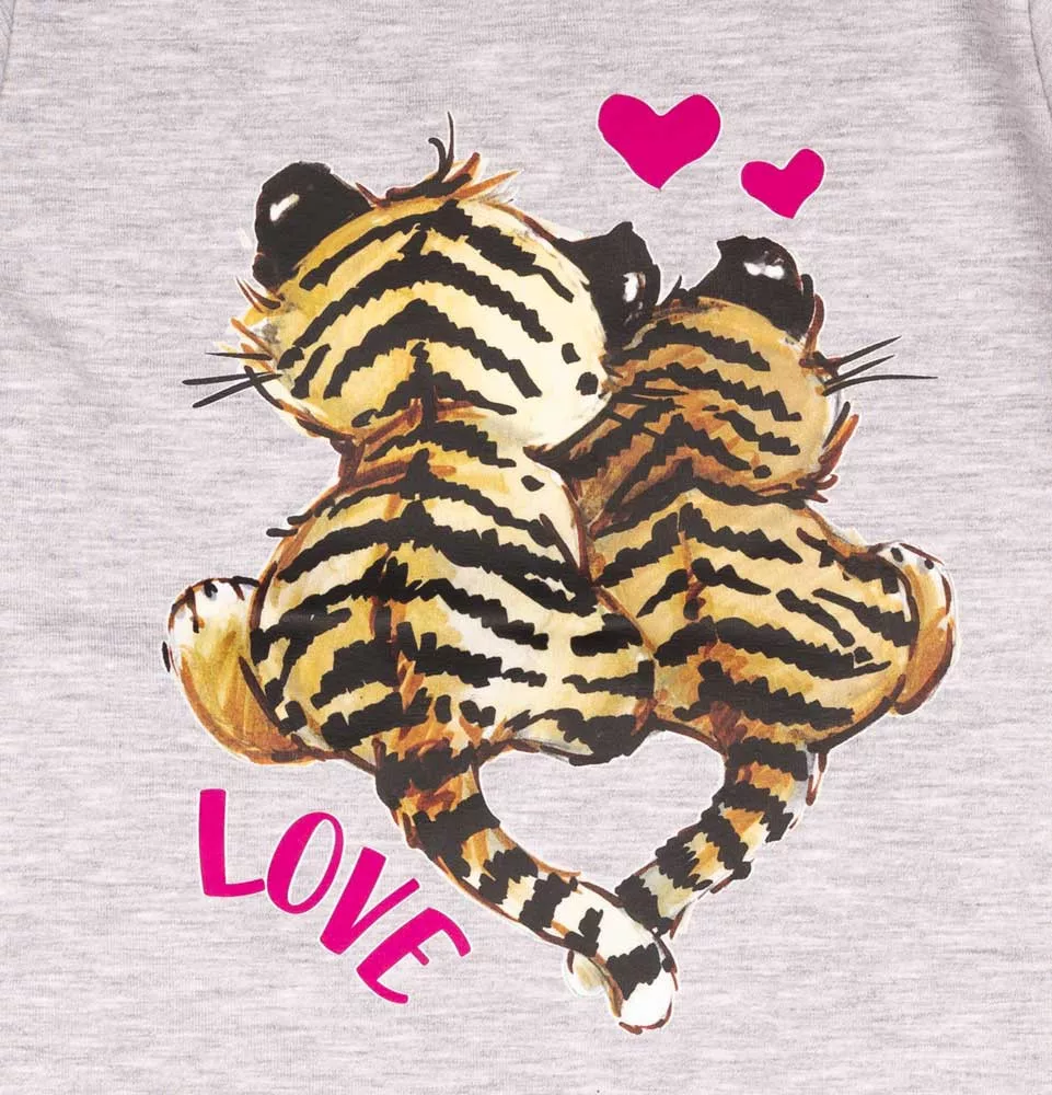 Hódítsd meg a kislányod szívét ezzel a hosszú ujjú, halványszürke színű pólóval, amelyen cuki tigris minta díszeleg! Minőségi, 95% pamutból és 5% elasztánból készült, amely garantálja a komfortot és a tartósságot. Kiválóan alkalmas óvodai napokra, játszótérre vagy családi összejövetelekre. A póló könnyen kombinálható farmernadrággal, így a kislányod csibészes megjelenést kölcsönözhet. Könnyen kezelhető, jól mosható és szín- és formatartó, így hosszú ideig megőrzi eredeti szépségét. Büszkén mondhatjuk, hogy ez a termék magyar minőség, első osztályú anyagokból készült.