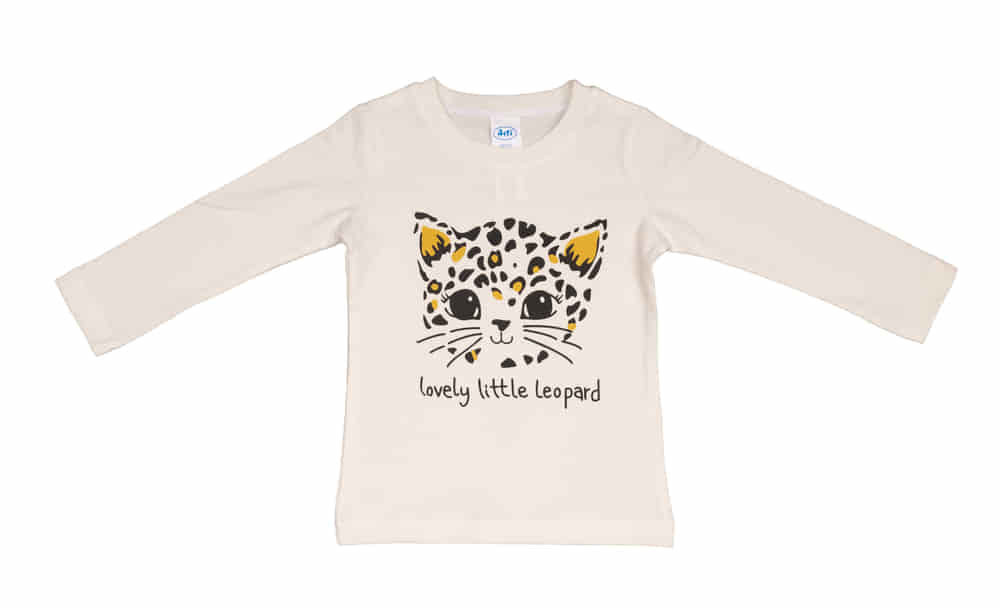 Hosszú ujjú kislány póló cuki Leopárd mintával A kislányok imádni fogják ezt a hosszú ujjú pólót, melyen cuki leopárd minta díszeleg. Az egyszerű, de stílusos design tökéletes választás mindennapokra, legyen szó óvodáról, játszótérről vagy családi programokról. A póló nyers színű alapja hozzájárul a természetes, játékos megjelenéshez, míg a vidám minta még izgalmasabbá teszi a viseletet. A póló könnyű, kényelmes viseletet biztosít, ami egy farmernadrággal kombinálva igazán jó megjelenést kölcsönöz a kislányoknak. A 95% pamut és 5% elasztán anyagösszetétel garantálja a termék puhaságát, rugalmasságát és ellenállóságát. Az anyag minőségi, könnyen kezelhető, jól mosható, szín- és formatartó, így hosszú ideig megőrzi eredeti állapotát. Magyarországon készült, első osztályú minőségű termék, amelyben a kislányok egész nap kényelmesen és boldogan játszhatnak. A pólóval nem csak a stílusos megjelenést, de a magas minőségű, hazai termelés értékeit is továbbadhatjuk a jövő generációjának.