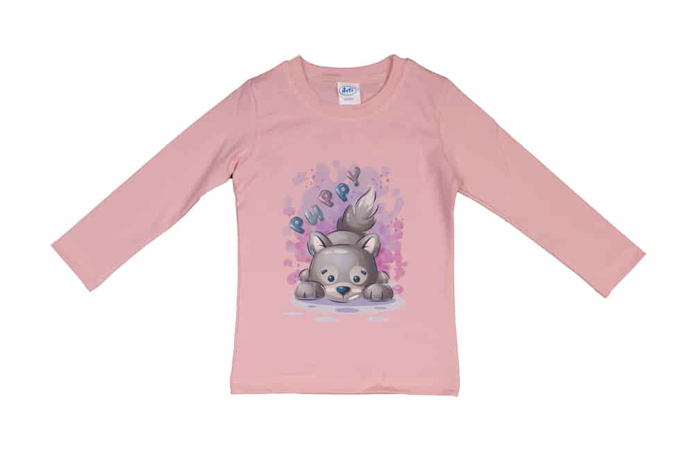 Hosszú ujjú kislány póló cuki Kutyus mintával