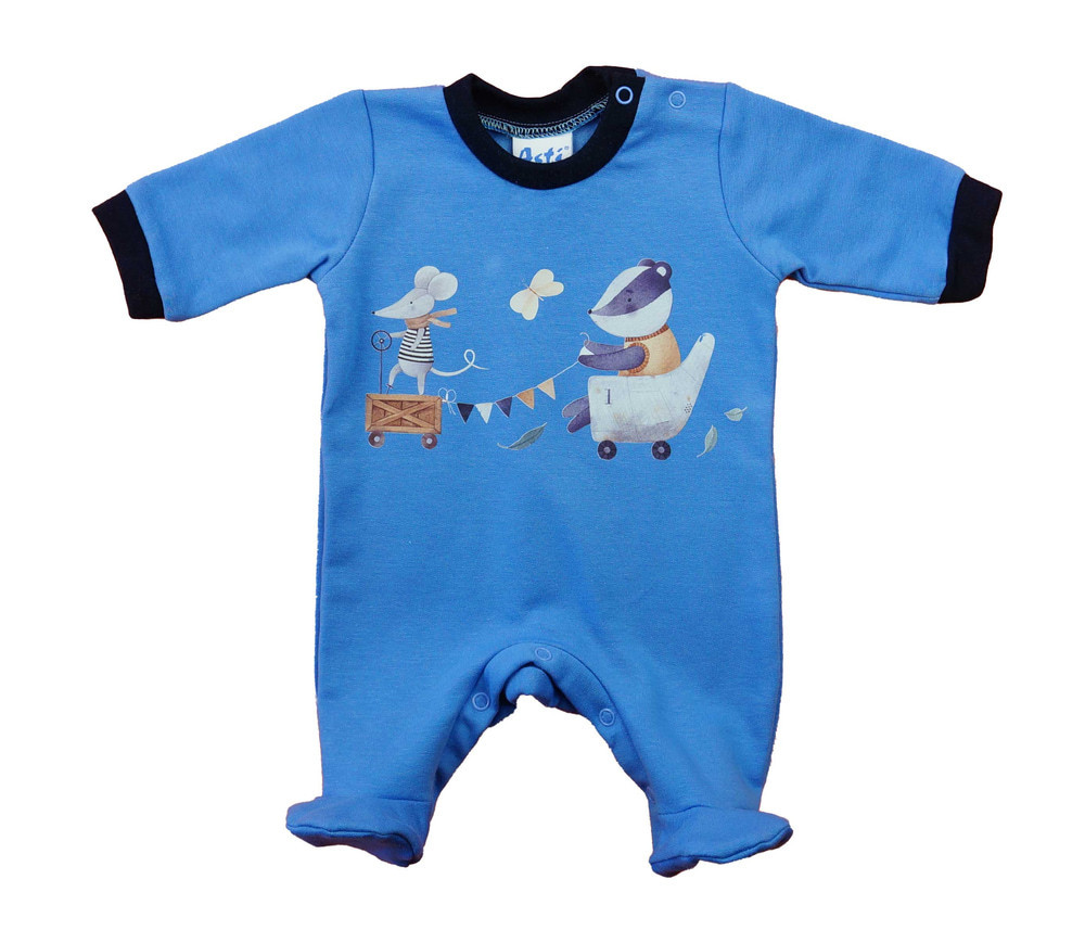 Belül bolyhos, hosszú ujjú baba rugdalózó – Állatos mintával