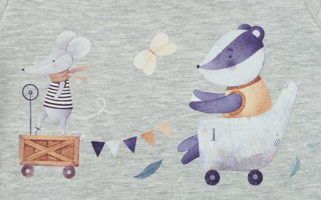 Belül bolyhos, hosszú ujjú baba rugdalózó – Állatos mintával