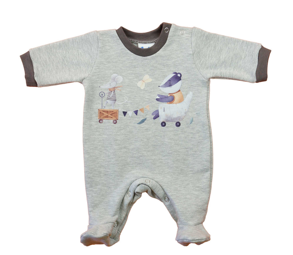 Belül bolyhos, hosszú ujjú baba rugdalózó – Állatos mintával