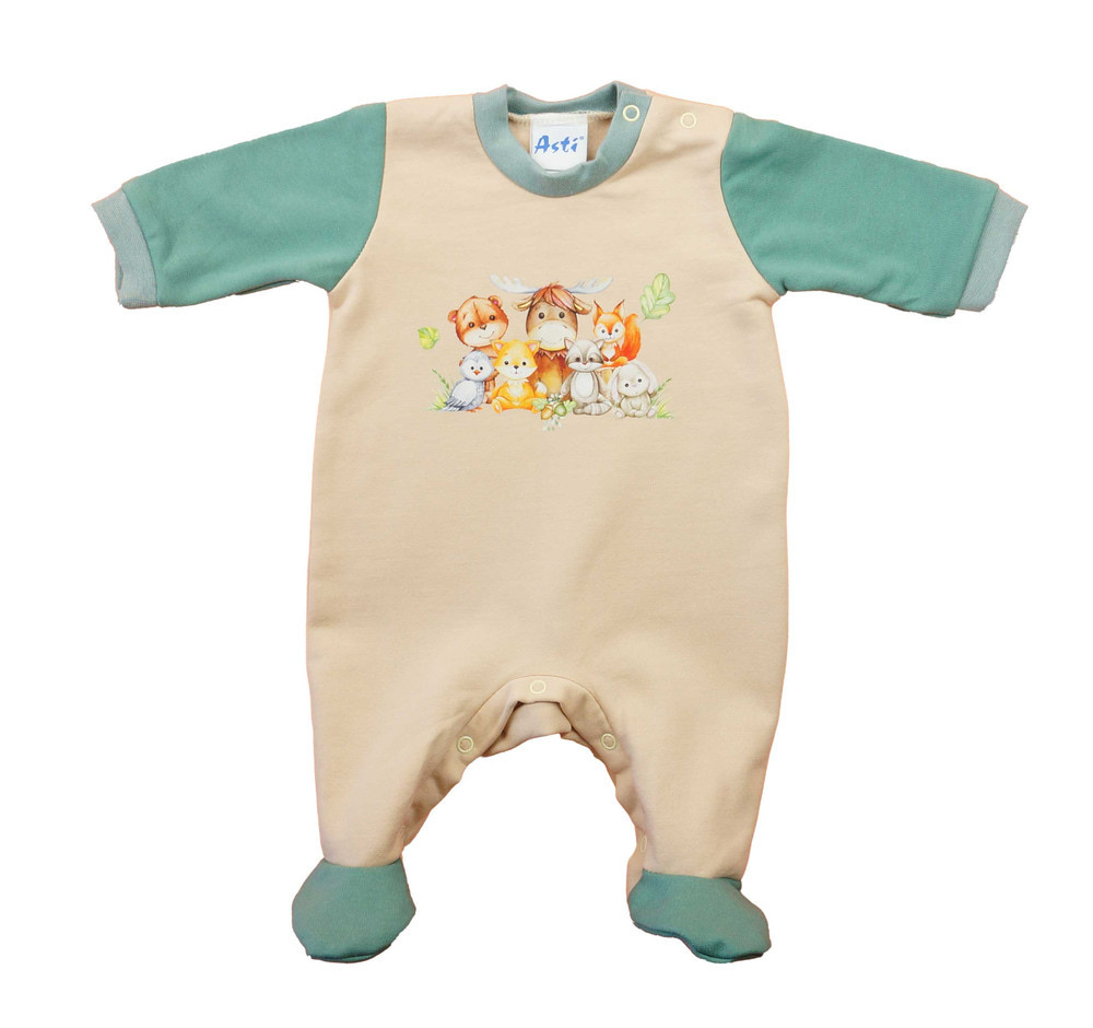 Belül bolyhos, hosszú ujjú baba rugdalózó – Állatos mintával