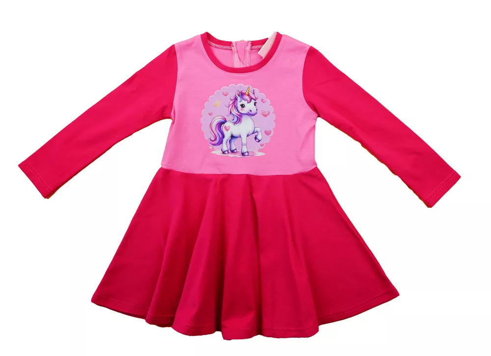 Hosszú ujjú kislány ruha – Unikornis mintával