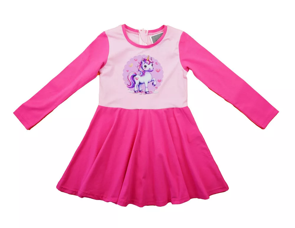 Hosszú ujjú kislány ruha – Unikornis mintával